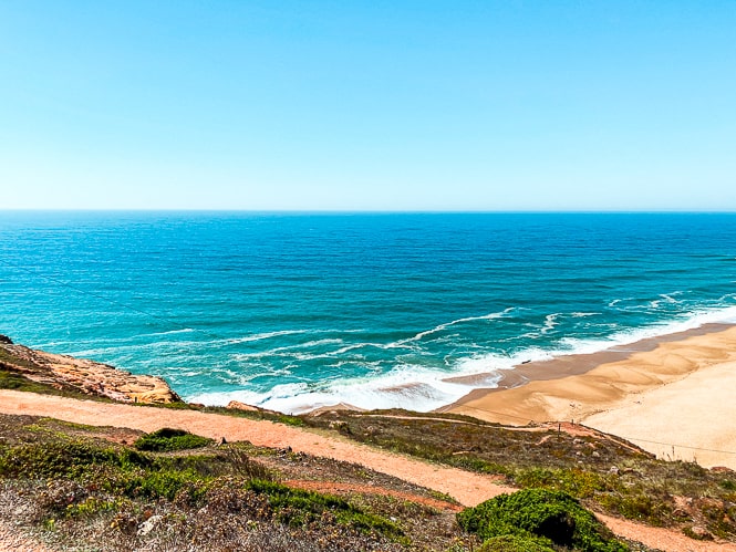 The royal family made Cascais their official summer residence in the 1870s. It’s retained its affluent nature to this day, being part of what tourist boards call the ‘Portuguese Riviera’. But it’s so much less touristy and in-your-face than the French and Italian versions, which is why I love it. Not to mention that it’s home to one of the prettiest views in the whole of Portugal: a little cove where you can look out to a charming stripy lighthouse, turquoise sea and palm trees. If that appeals to you, have a look at my large guide to things to do in Cascais. I recommend lots of lovely places to eat, things to see, shops and of course THAT photo spot with the lighthouse…